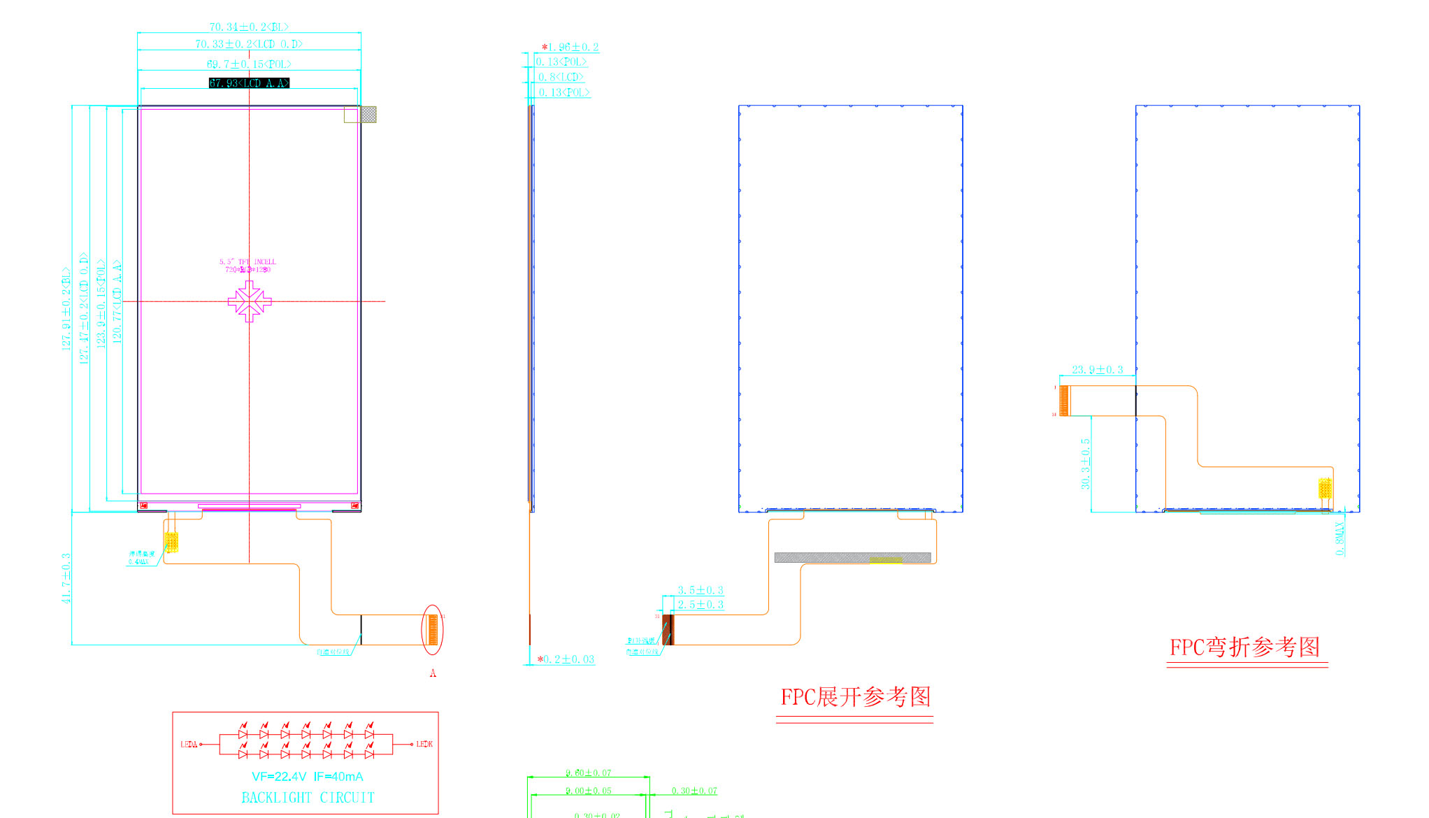 | Dimensional Outline | 70.34(W)*127.91(H)*1.96(T) | Backlight leds | 14 pcs |