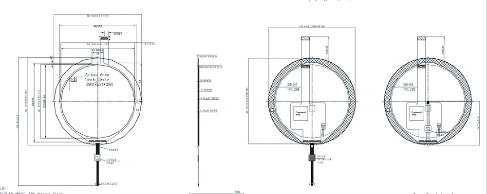 This 5-inch round LCD screen features IPS full-viewing angle, a 1080*1080 resolution, a MIPI interface, a 1300 contrast ratio, 16.7M colors, and a 50-pin pin configuration. It operates in temperatures from -20°C to 60°C and has a storage temperature range of -30°C to 70°C. It features a multi-point capacitive touchscreen using the GT911 touchscreen IC with a GFF structure and an I2C interface. This 5-inch round screen is available long-term and can be used in advertising displays, consumer electronics, smart home devices, medical equipment, industrial equipment, automotive instrumentation, and other products.