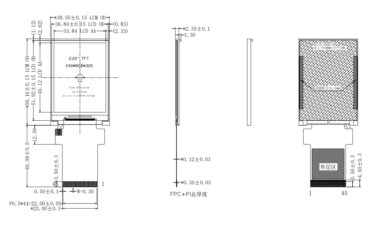 Shenzhen Hongjia Technology has been supplying 2.2-inch LCD screens for a long time, maintaining a safe inventory to ensure continuous supply. This 2.2-inch LCD display has a resolution of 240*320, uses the mature ST7789 IC, offers high reliability, and supports SPI/MCU/RGB interfaces, including 3/4-wire SPI interfaces, 8-bit/16-bit MCU interfaces, and 16/18/24-bit RGB interfaces. The 2.2-inch TFT screen is positioned between 2.4-inch and 2.8-inch LCD screens, suitable for customers requiring a small size, and also supports microcontrollers. It has been favored by many customers. We also provide customized services, including flexible cable interfaces, backlight brightness, and touch screens.