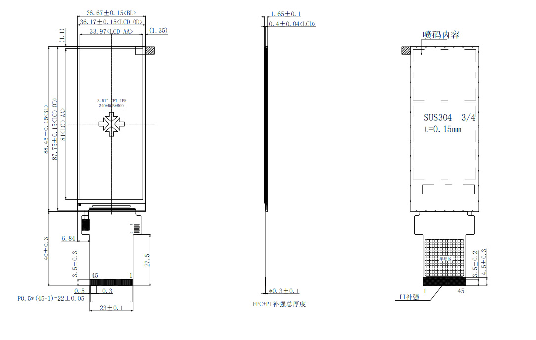 This 3.51-inch long strip screen boasts a 340*800 resolution, IPS full viewing angle, and utilizes the mature and stable ST7701S driver IC. It supports 16/18/24-bit RGB interfaces and 1/2-channel MIPI interfaces. The model number from Shenzhen Hongjia Technology is HJ3510-01. It features a standard 45-pin connector and an I2C capacitive touchscreen interface. This small-sized bar-type screen is suitable for use in small home appliances, smart home devices, beauty equipment, coffee machines, medical equipment, and other products. We also offer customization services.